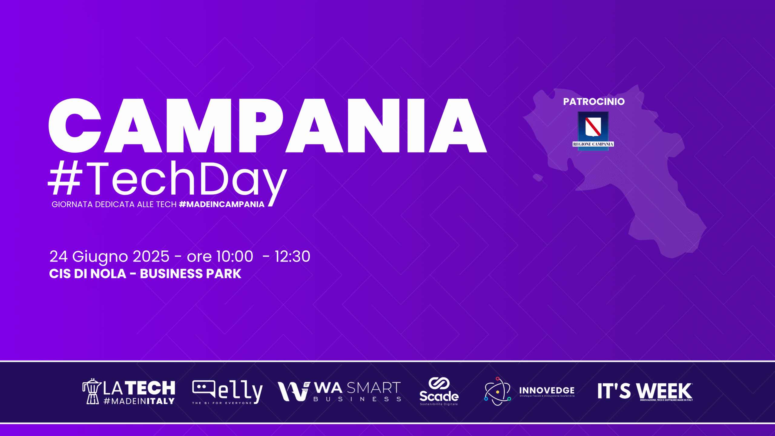 Martedi 24 giugno presso il Business Park del CIS di Nola si terrà il primo CAMPANIA #TechDay, un evento innovativo che vuole dimostrare il potenziale illimitato del settore del tech in Campania, evidenziando la capacità di competere a livello nazionale e globale in innovazione e tecnologia. Mostreremo come la nostra forza tecnologica può attrarre investimenti e stimolare lo sviluppo del futuro del Tech Campano.
